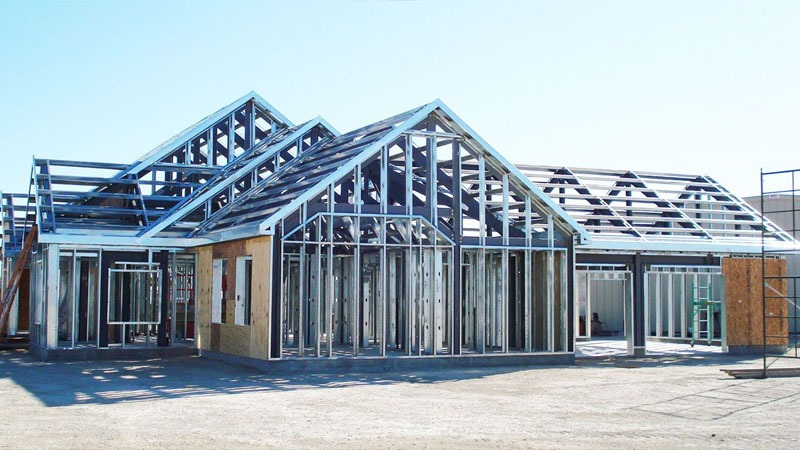 - Steel Frame (Estruturas Metálicas): A estrutura da construção é formada por perfis metálicos leves, que são revestidos com placas de gesso ou drywall. Esse método é ideal para projetos que exigem grandes vãos livres e flexibilidade na planta baixa, além de serem de rápida montagem.
